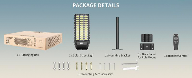 【Extremely Bright Solar Lights Outdoor】Solar street lights outdoor use 1440 high-efficiency 5730 SMD lamp beads and with a long lifespan and low light decay, 650000 lumens and a color temperature of 7500K for extreme brightness.