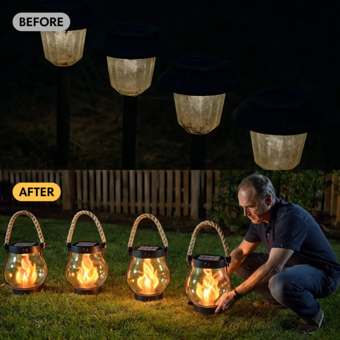 This solar lantern creates a realistic flickering flame effect that gives your space a warm, cozy glow — without heat, smoke, or danger. Perfect for dinners, patios, or garden paths. It’s not fire. But your eyes won’t know the difference.